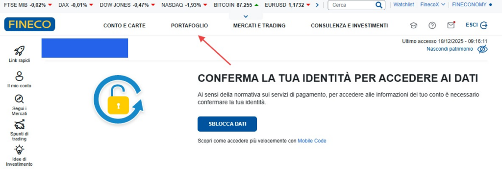 Dopo aver effettuato l’accesso al conto Fineco, è necessario: