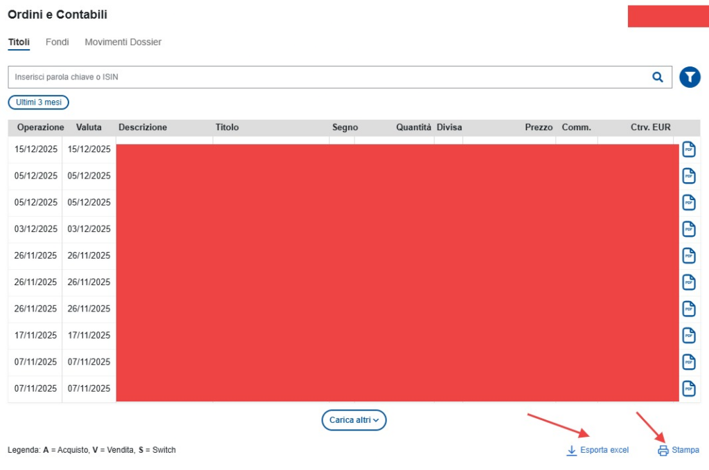 - verificare la sezione corretta (titoli, fondi o movimenti dossier)