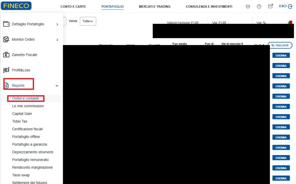 Nel menu laterale sinistro, all’interno della sezione Portafoglio, cliccare su Report.